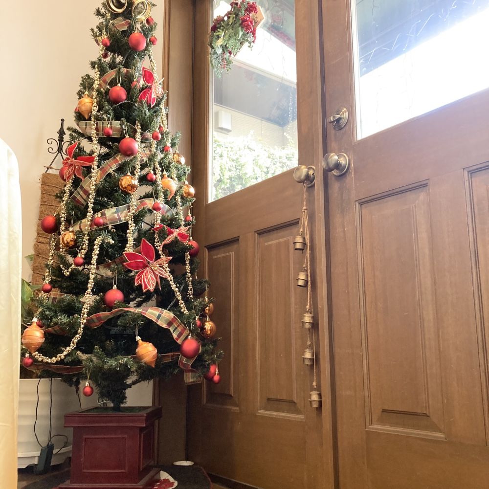 店内はクリスマスディスプレーで華やかに、